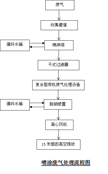 貴公司的有機(jī)廢氣主要來源于噴涂車間涂料所含有有機(jī)溶劑和涂膜在烘干固化時(shí)的分解物即揮發(fā)性有機(jī)物(VOC)和氮氧化物廢氣(主要為NO、NO2,其中NO占85%,NO2占15%)。廢氣中的揮發(fā)性有機(jī)物的污染成分主要是甲苯、二甲苯等,含有少量的未處理完成的漆霧。我公司通過實(shí)地考察及承接同類工程積累經(jīng)驗(yàn),決定采用填料式噴淋塔對(duì)廢氣中的漆霧顆粒進(jìn)行預(yù)處理,預(yù)處理后廢氣進(jìn)入一體化復(fù)合機(jī)有機(jī)廢氣處理+脫硝裝置對(duì)廢氣進(jìn)行處理,該工藝既能去除有機(jī)廢氣同時(shí)達(dá)到脫硝的目的。